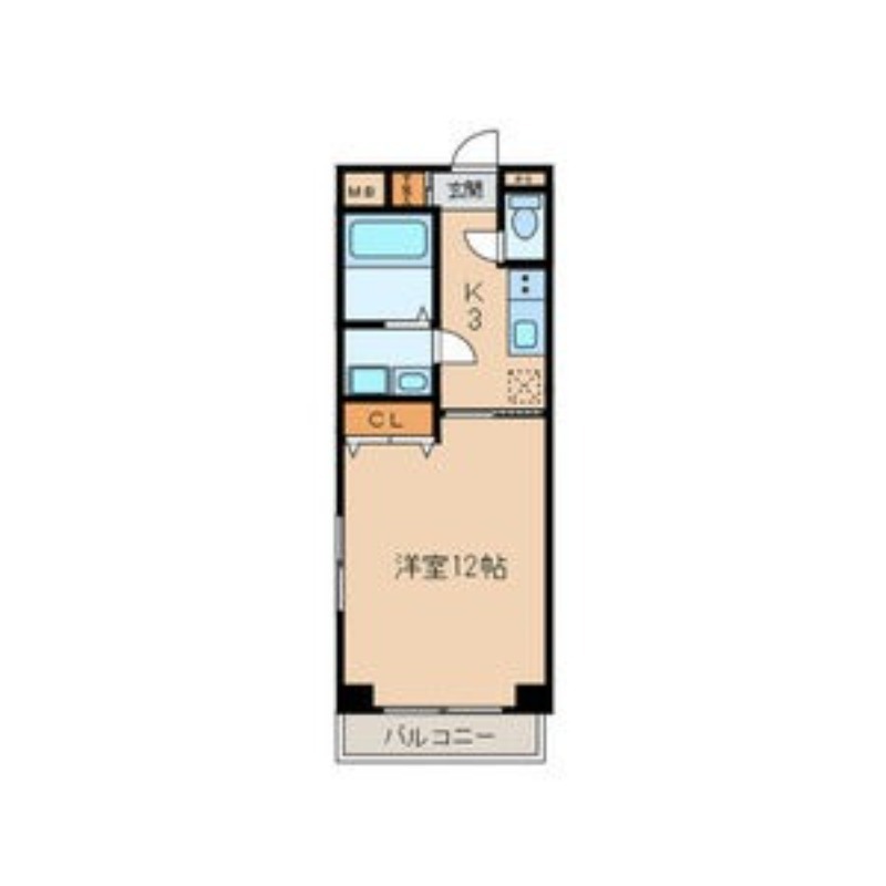 | 間取り詳細 | 洋室 12畳 、 K 3畳 |