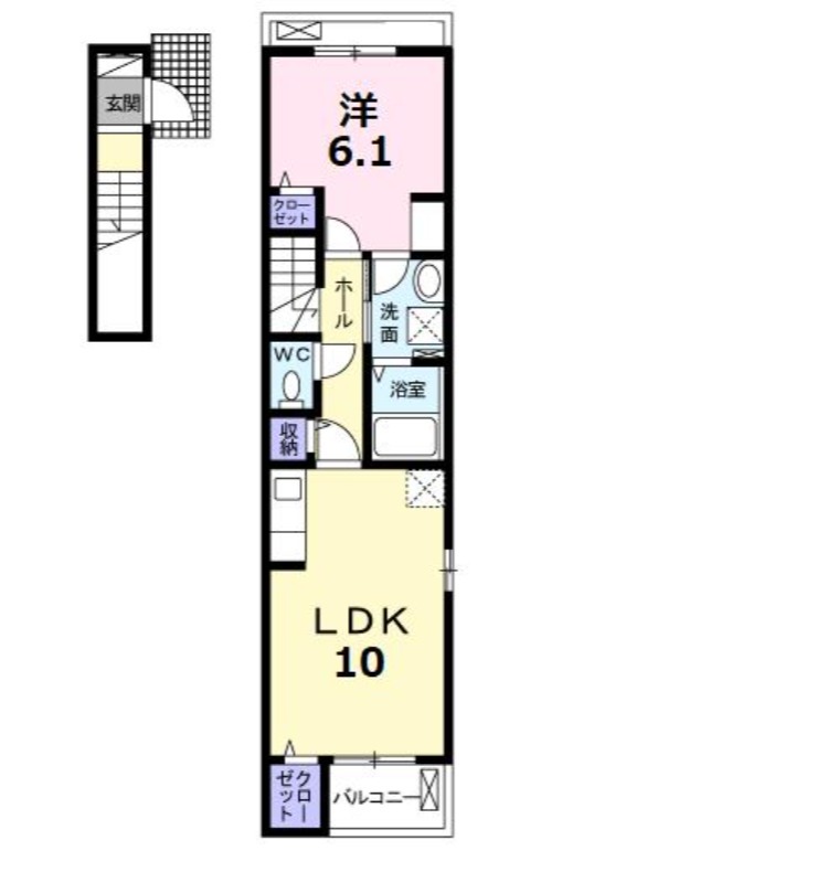 | 間取り詳細 | 洋室 6.1畳 、 LDK 10畳 |