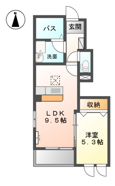 | 間取り詳細 | LDK 9.5畳 、 洋室 5.3畳 |