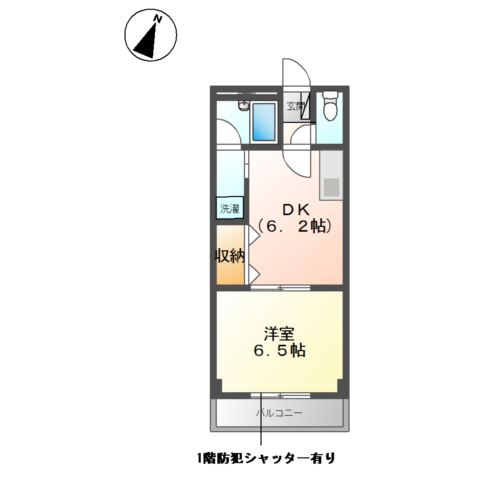 | 間取り詳細 | DK 6.2畳 、 洋室 6.5畳 |