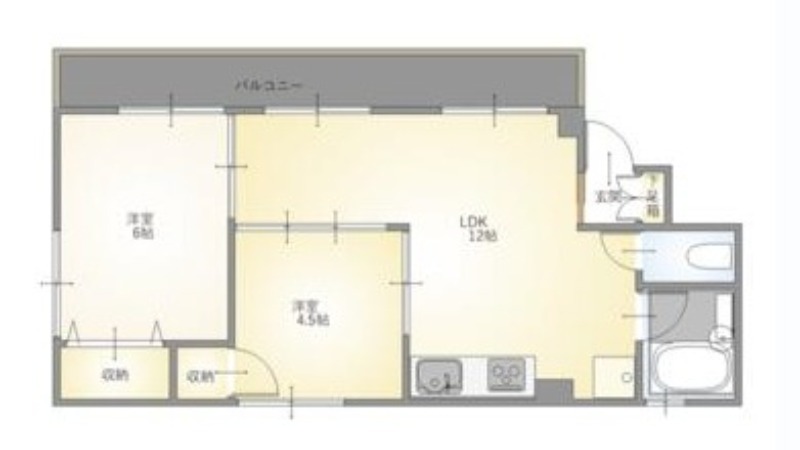 | 間取り詳細 | 洋室 6畳 、 洋室 4.5畳 、 LDK 12畳 |