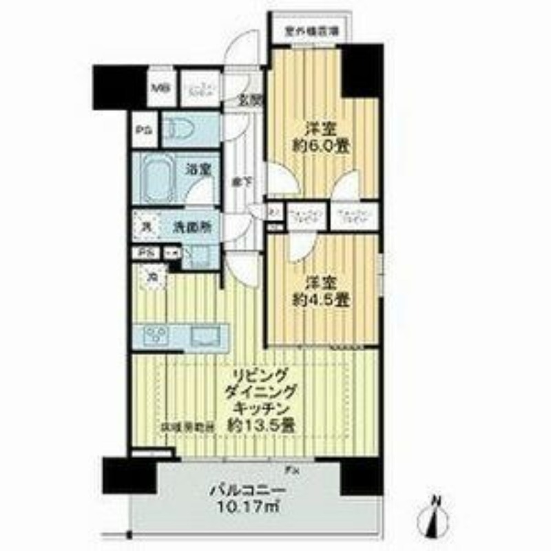 | 間取り詳細 | LDK 13.5畳 、 洋室 6畳 、 洋室 4.5畳 |