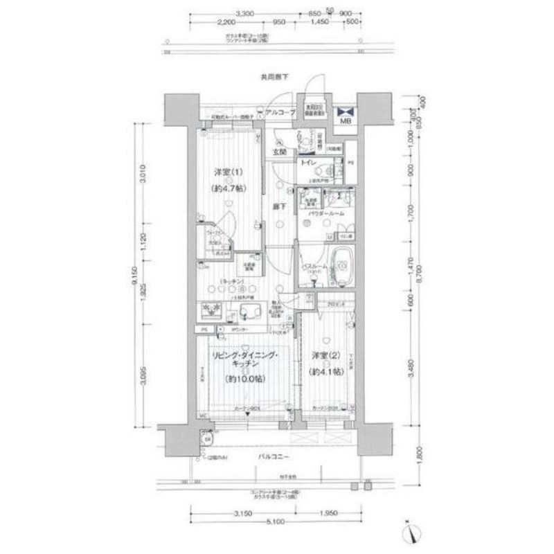 洋室 4.7畳 洋室 4.1畳 |