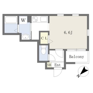 | ワンルーム | 洋室 6.6畳 | 24.43㎡ |