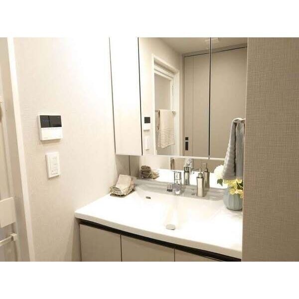 | 設備 | ガス(都市ガス)、インターホン(TVモニター付き)、防犯カメラ、オートロック、宅配ボックス、専用ゴミ置き場(あり)、駐輪場、バイク置き場、日当り良好、眺望良好、南向きリビング、フローリング、全居室フローリング、照明器具、ベランダ・バルコニー、ウォークインクローゼット、ウォークインクローゼット数(1)、下駄箱、バス・トイレ別(別室)、シャワー、追い焚き、浴室乾燥機、脱衣所、給湯、3点給湯、温水洗浄便座、洗面台、洗面所独立、シャンプードレッサー、三面鏡付き洗面化粧台、洗面所にドア、洗濯機置き場(室内)、コンロ設置済、コンロ口数(2)、コンロ種類(都市ガス)、食器洗乾燥機、システムキッチン、カウンターキッチン、対面キッチン、エアコン、エアコン台数(1)、床暖房、24H換気システム、BS、CS、CATV、インターネット使用料無料 | ||