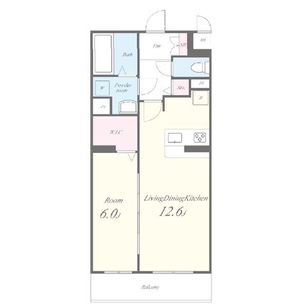 | 間取り詳細 | LDK 12.6畳 、 洋室 6畳 |