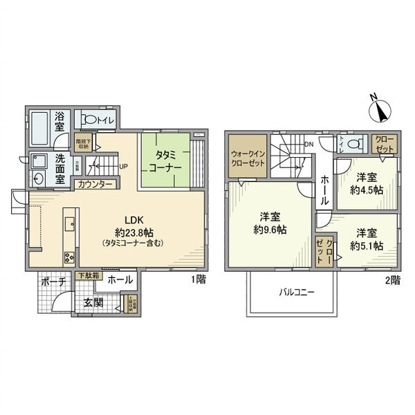 | 間取り詳細 | 洋室 9.6畳 、 洋室 5.1畳 、 洋室 4.5畳 、 LDK 23.8畳 |