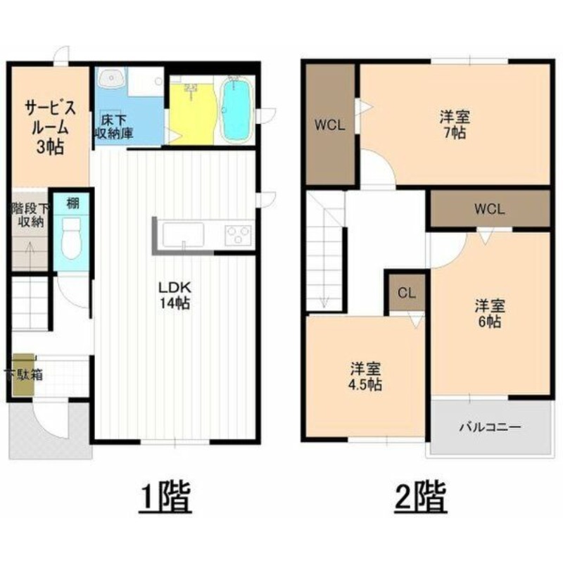 | 間取り詳細 | LDK 14畳 、 洋室 7畳 、 洋室 6畳 、 洋室 4.5畳 |