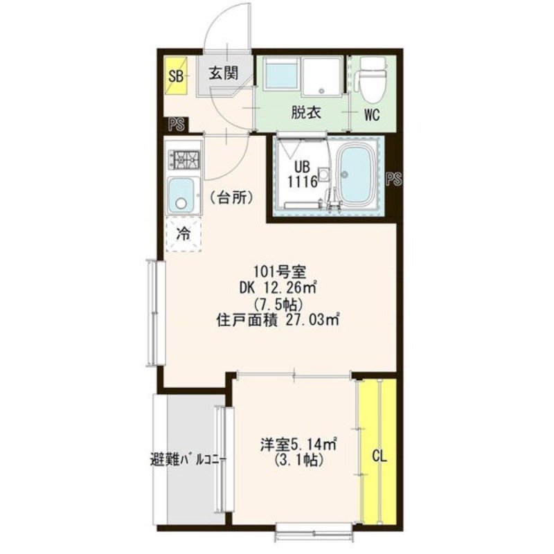 | 間取り | 1DK | 面積 | 27.03㎡ |