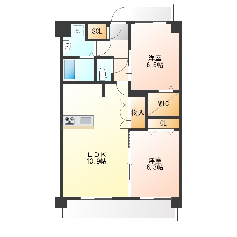 | 間取り詳細 | 洋室 6.5畳 、 洋室 6.3畳 、 LDK 13.9畳 |
