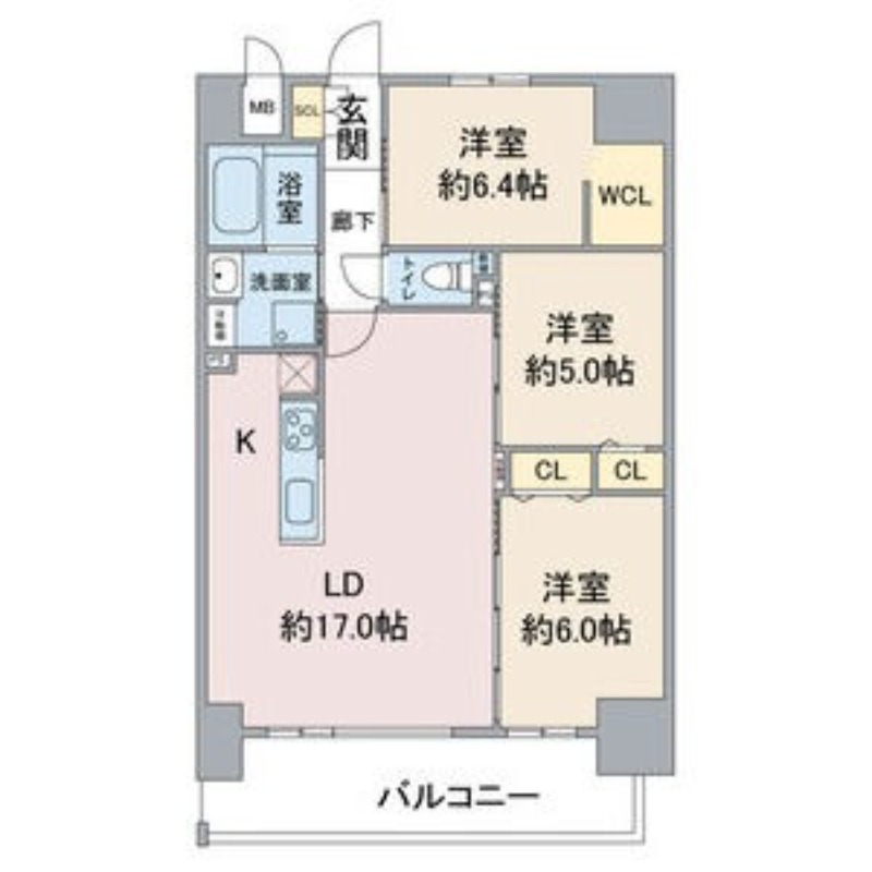 | 間取り詳細 | 洋室 6.4畳 、 洋室 6畳 、 洋室 5畳 、 LDK 畳 |