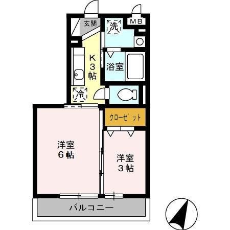 | 間取り詳細 | 洋室 6畳 、 洋室 3畳 、 K 3畳 |