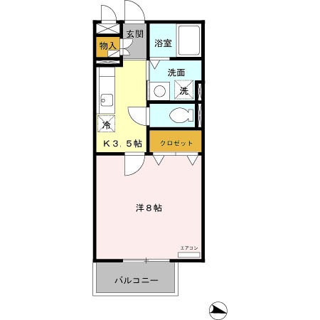 | 間取り詳細 | 洋室 8畳 、 K 3.5畳 |