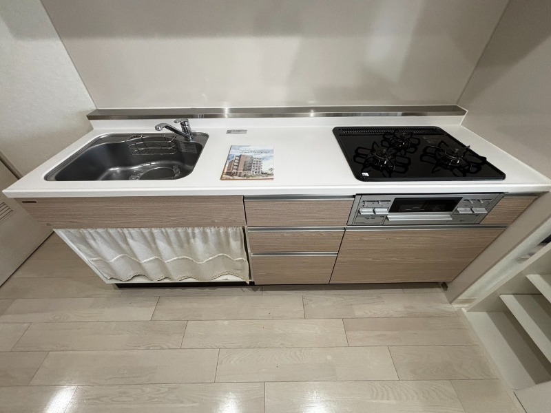 | 設備 | ガス(プロパン)、管理形態(巡回)、インターホン(TVモニター付き)、防犯カメラ、オートロック、宅配ボックス、専用ゴミ置き場(あり)、駐輪場、日当り良好、南向きリビング、フローリング、全居室フローリング、照明器具、ベランダ・バルコニー、ウォークスルークローゼット、全居室収納、物置、下駄箱、バス・トイレ別(別室)、シャワー、追い焚き、浴室乾燥機、オートバス、脱衣所、給湯、3点給湯、温水洗浄便座、ウォームレット、洗面所独立、シャンプードレッサー、三面鏡付き洗面化粧台、洗面所にドア、洗濯機置き場(室内)、コンロ設置済、コンロ口数(3)、コンロ種類(プロパン)、グリル、システムキッチン、エアコン、エアコン台数(1)、床暖房、24H換気システム、LAN、インターネット使用料無料 | ||
