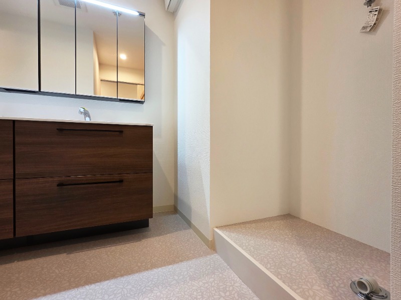 新築、駐車場有、エレベーター、ペット相談、防犯カメラ、オートロック、宅配ボックス、角部屋、フローリング、バストイレ別、ウォークインクロゼット、追い焚き、浴室乾燥機、オートバス、温水洗浄便座、シャンプードレッサー、床暖房