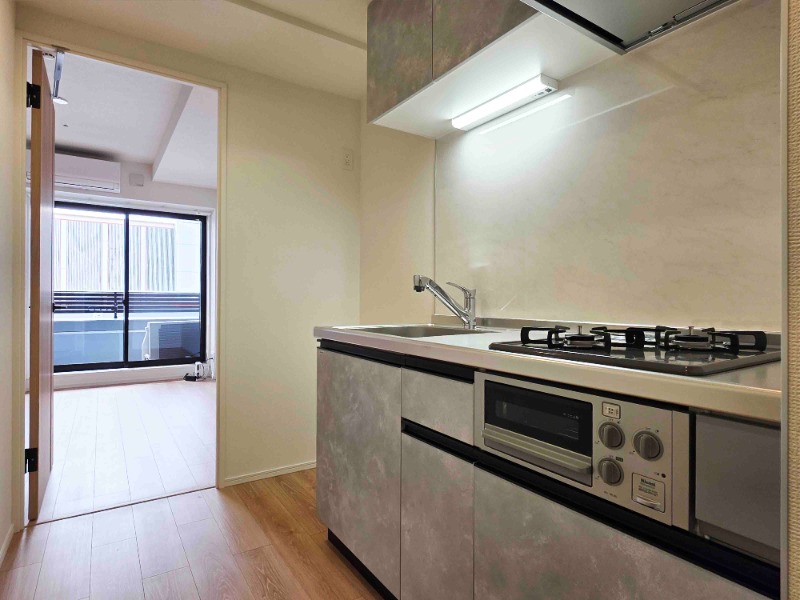 設備 ガス(都市ガス)、管理形態(巡回)、インターホン(TVモニター付き)、防犯カメラ、カードキー、オートロック、火災報知機、宅配ボックス、専用ゴミ置き場(あり)、駐輪場、通風良好、フローリング、全居室フローリング、ベランダ・バルコニー、クローゼット、クローゼット数(1)、全居室収納、下駄箱、バス・トイレ別(別室)、シャワー、浴室乾燥機、脱衣所、給湯、温水洗浄便座、ウォームレット、洗面所独立、シャンプードレッサー、洗面所にドア、洗濯機置き場(室内)、コンロ口数(2)、コンロ種類(都市ガス)、グリル、システムキッチン、エアコン、エアコン台数(1)、24H換気システム、インターネット使用料無料