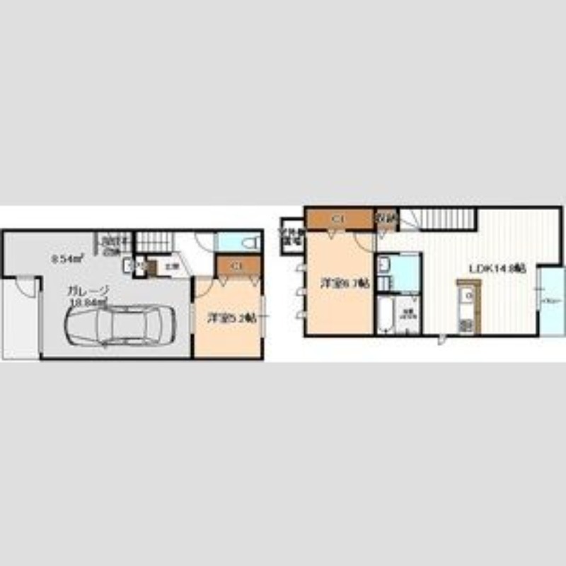 | 間取り詳細 | LDK 14.8畳 、 洋室 6.7畳 、 洋室 5.2畳 |