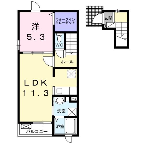 | 間取り詳細 | 洋室 5.3畳 、 LDK 11.3畳 |