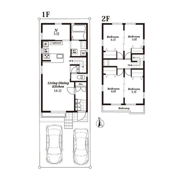 洋室 6畳 洋室 6.1畳 洋室 5畳 洋室 5.3畳 S 3.5畳 |