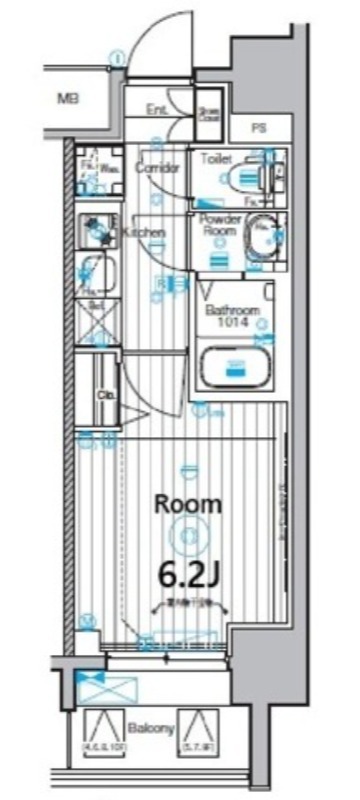 | 1K | 洋室 6.2畳 | 21.83㎡ |