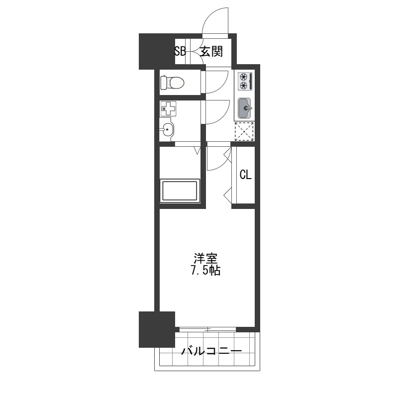 | 1K | 洋室 7.5畳 | 24.3㎡ |