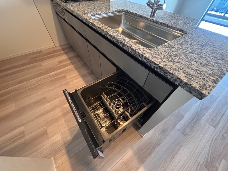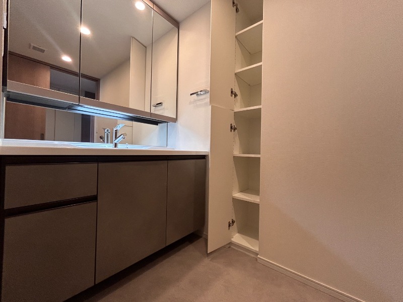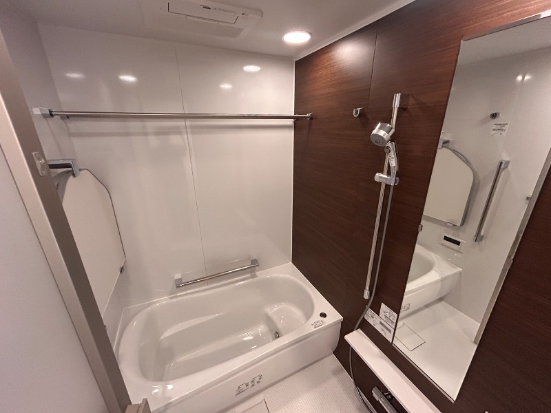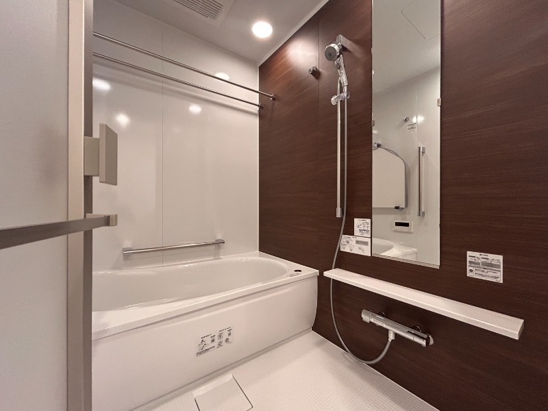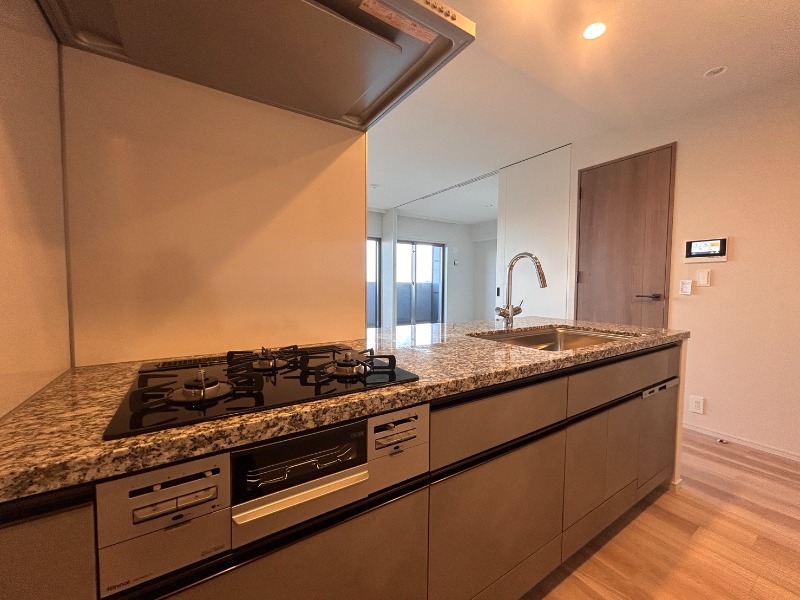 | 設備 | ガス(都市ガス)、インターホン(TVモニター付き)、防犯カメラ、オートロック、宅配ボックス、専用ゴミ置き場(あり)、駐輪場、日当り良好、眺望良好、通風良好、フローリング、全居室フローリング、ベランダ・バルコニー、収納スペース、クローゼット、ウォークインクローゼット、全居室収納、下駄箱、バス・トイレ別(別室)、シャワー、追い焚き、オートバス、脱衣所、給湯、温水洗浄便座、洗面所独立、シャンプードレッサー、洗面所にドア、洗濯機置き場(室内)、システムキッチン、カウンターキッチン、対面キッチン | ||