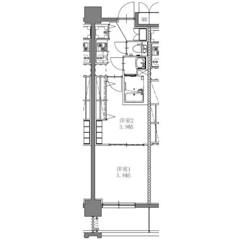 | 間取り詳細 | 洋室 5.8畳 、 洋室 3.9畳 、 K 畳 |