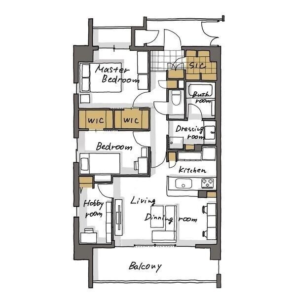 | 間取り詳細 | LDK 14.4畳 、 洋室 7畳 、 洋室 5.4畳 、 S 3.5畳 |