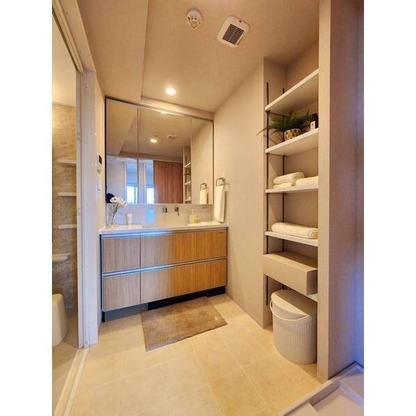 | 設備 | ガス(都市ガス)、管理形態(巡回)、インターホン(TVモニター付き)、防犯カメラ、オートロック、宅配ボックス、専用ゴミ置き場(あり)、駐輪場、日当り良好、南向き部屋数(2室)、角部屋、デザイナーズ、フローリング、全居室フローリング、ベランダ・バルコニー、クローゼット、クローゼット数(2)、下駄箱、バス・トイレ別(別室)、追い焚き、浴室乾燥機、給湯、洗面台、洗面所独立、シャンプードレッサー、三面鏡付き洗面化粧台、洗濯機置き場(室内)、コンロ設置済、コンロ口数(3)、コンロ種類(都市ガス)、システムキッチン、カウンターキッチン、対面キッチン、冷房のみ、エアコン、24H換気システム、光ファイバー、インターネット使用料無料 | ||