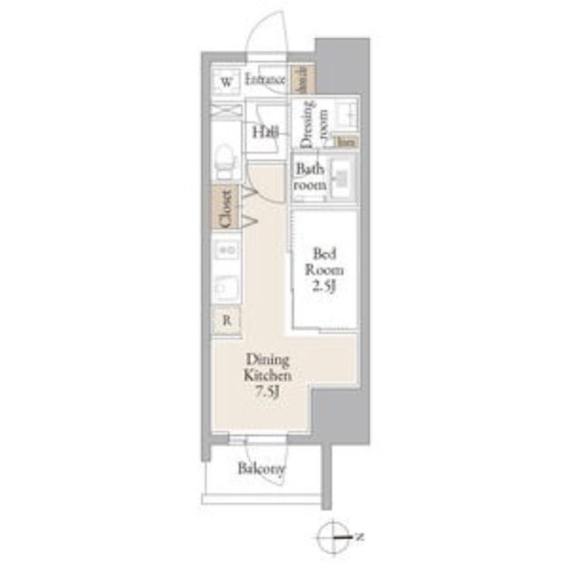 | 間取り詳細 | DK 7.5畳 、 洋室 2.5畳 |