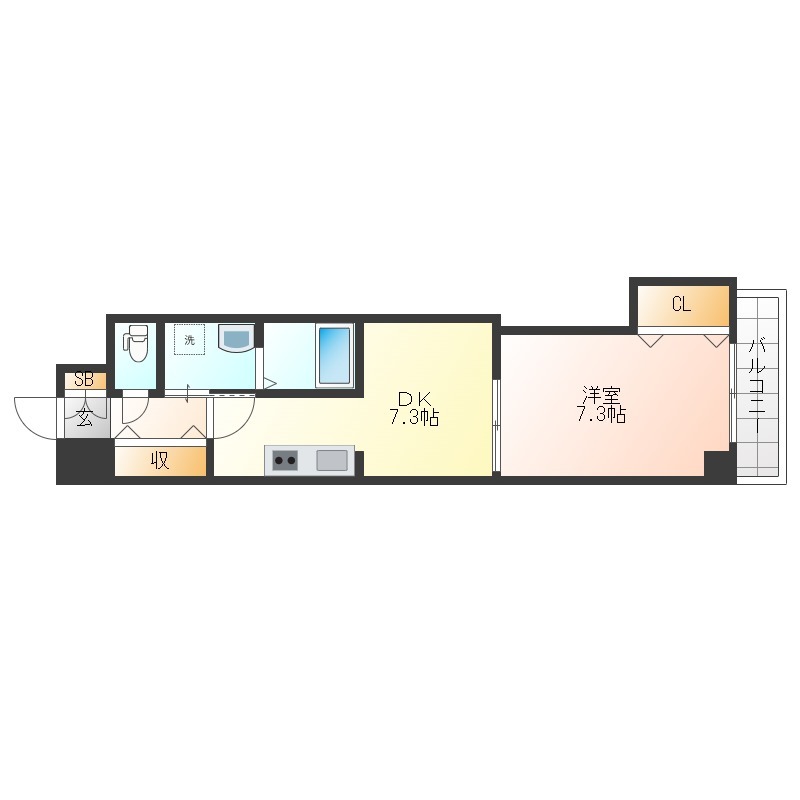 | 間取り詳細 | DK 7.3畳 、 洋室 7.3畳 |