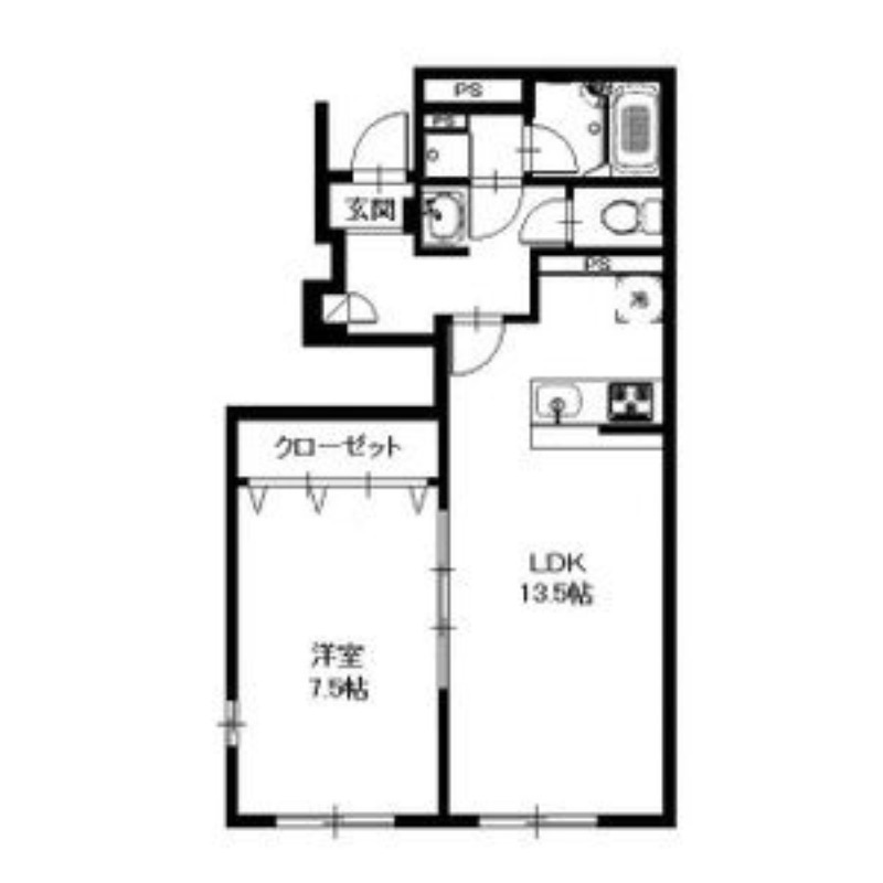 | 間取り詳細 | LDK 13.5畳 、 洋室 7.5畳 |