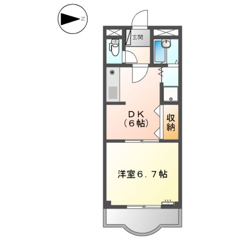 | 間取り詳細 | DK 6畳 、 洋室 6.7畳 |