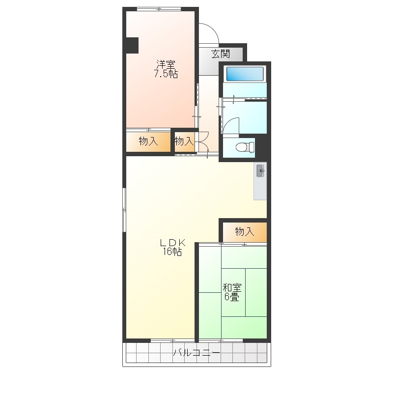 洋室 7.5畳 和室 6畳 |