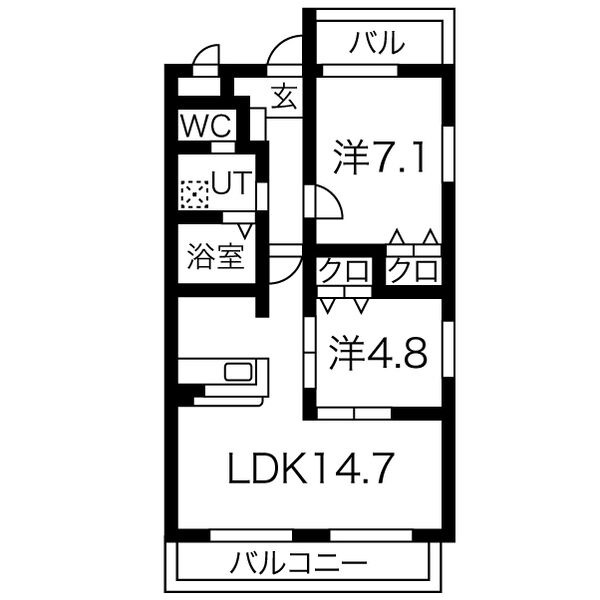 間取り詳細 | LDK 14.7畳 、 洋室 7.1畳 、 洋室 4.8畳 |