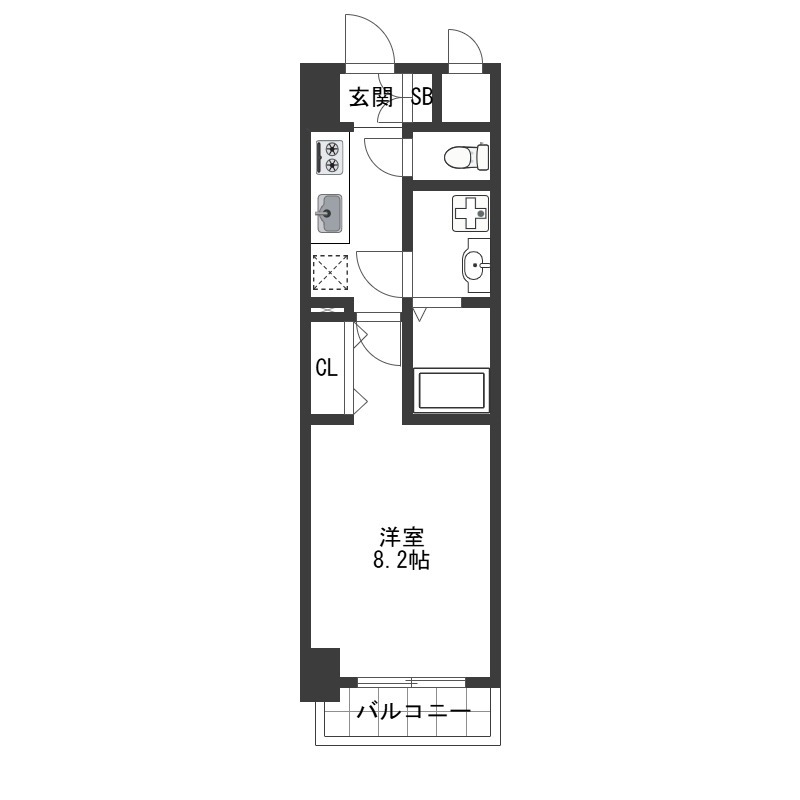 洋室 8.2畳 、 K 2.3畳