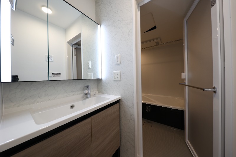 | 設備 | ガス(都市ガス)、管理形態(巡回)、インターホン(TVモニター付き)、防犯カメラ、カードキー、オートロック、火災報知機、宅配ボックス、専用ゴミ置き場(あり)、駐輪場、2面採光、角部屋、フローリング、全居室フローリング、照明器具、ベランダ・バルコニー、L字型バルコニー、シャッター雨戸(手動)、収納スペース、ウォークスルークローゼット、下駄箱、バス・トイレ別(別室)、シャワー、追い焚き、浴室乾燥機、脱衣所、給湯、浴室1坪以上、温水洗浄便座、洗面台、洗面所独立、シャンプードレッサー、洗面所にドア、洗濯機置き場(室内)、コンロ口数(3)、コンロ種類(都市ガス)、グリル、システムキッチン、カウンターキッチン、対面キッチン、エアコン、エアコン台数(3)、BS、CS、CATV、インターネット使用料無料 | ||