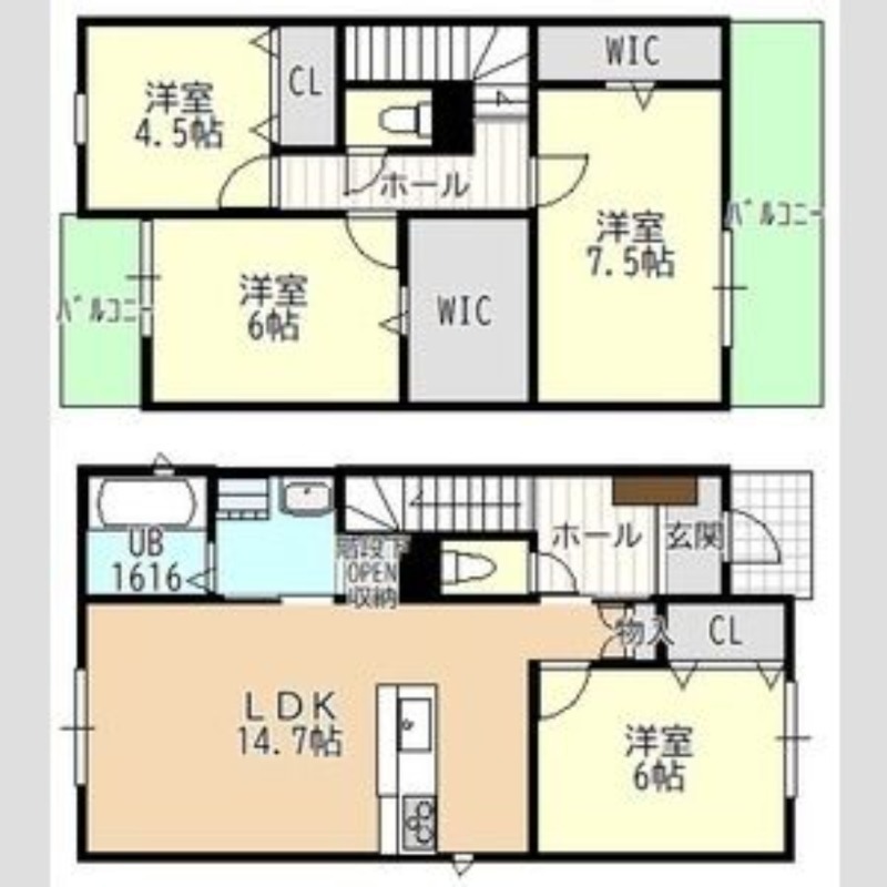 | 間取り詳細 | LDK 14.7畳 、 洋室 7.5畳 、 洋室 6畳 、 洋室 6畳 、 洋室 4.5畳 |