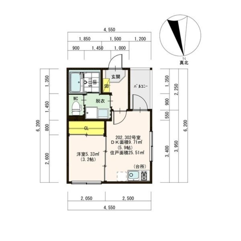 | 間取り | 1DK | 面積 | 25.51㎡ |