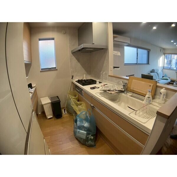 ガス(都市ガス)、インターホン(TVモニター付き)、日当り良好、フローリング、全居室フローリング、ベランダ・バルコニー、クローゼット、クローゼット数(3)、全居室収納、下駄箱、バス・トイレ別(別室)、シャワー、浴室乾燥機、脱衣所、給湯、洗面所独立、洗面所にドア、洗濯機置き場(室内)、コンロ設置済、コンロ口数(3)、コンロ種類(都市ガス)、グリル、システムキッチン、カウンターキッチン、対面キッチン、エアコン、エアコン台数(2)、24H換気システム |