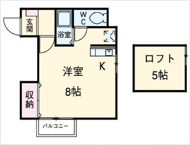 | ワンルーム | 洋室 8畳 | 20㎡ |