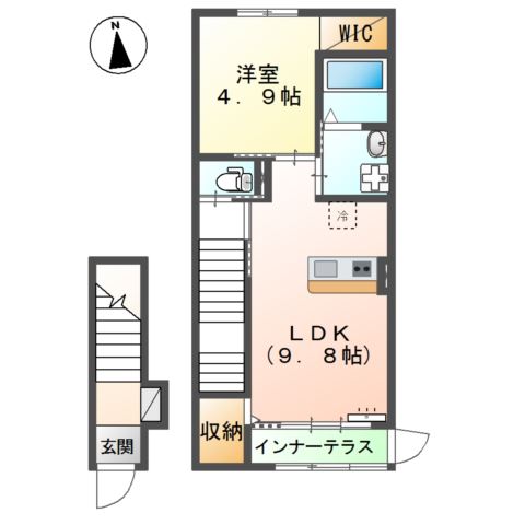 | 間取り詳細 | LDK 9.8畳 、 洋室 4.9畳 |