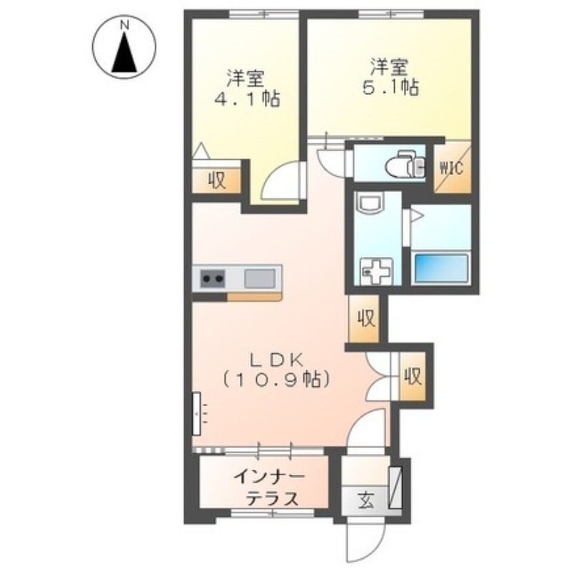 | 間取り詳細 | LDK 10.9畳 、 洋室 5.1畳 、 洋室 4.1畳 |