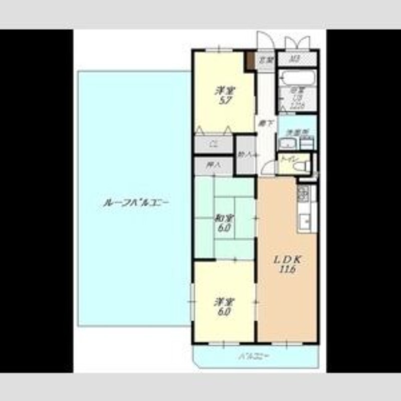 | 間取り詳細 | LDK 11.6畳 、 洋室 6畳 、 洋室 5.7畳 、 和室 6畳 |