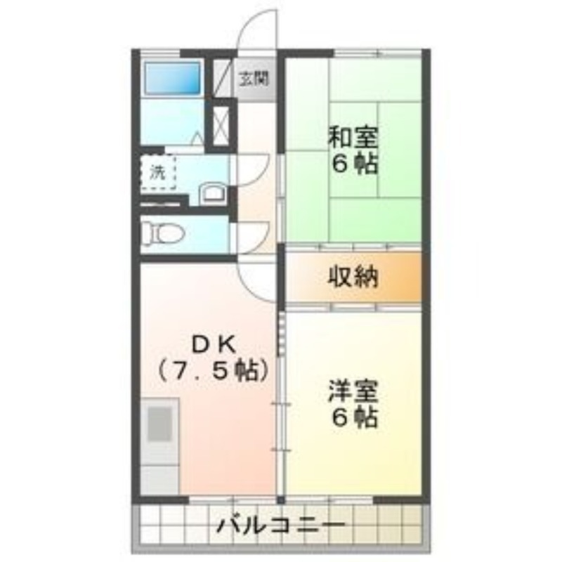 | 間取り詳細 | DK 7.5畳 、 洋室 6畳 、 和室 6畳 |
