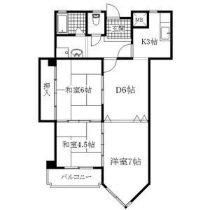 | 間取り詳細 | D 6畳 、 K 3畳 、 洋室 7畳 、 和室 6畳 、 和室 4.5畳 |
