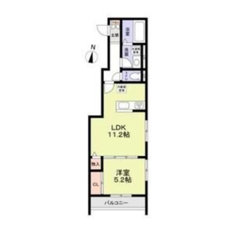 | 間取り詳細 | LDK 11.2畳 、 洋室 5.2畳 |