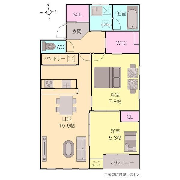 | 間取り詳細 | LDK 15.6畳 、 洋室 7.9畳 、 洋室 5.3畳 |