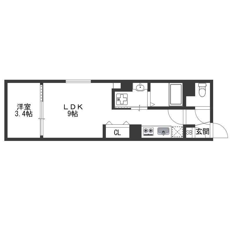| 間取り詳細 | LDK 9畳 、 洋室 3.4畳 |
