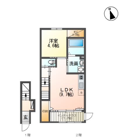 | 間取り詳細 | LDK 9.7畳 、 洋室 4.6畳 |